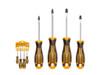 Set de destornilladores de 4 piezas, cuenta con 2 destornilladores de punta cruz ph1x100mm y ph2x150mm, además con 2 destornilladores de punta paleta sl5x100mm y sl6x150mm. con mango ergonómico para todo tipo de trabajos.
